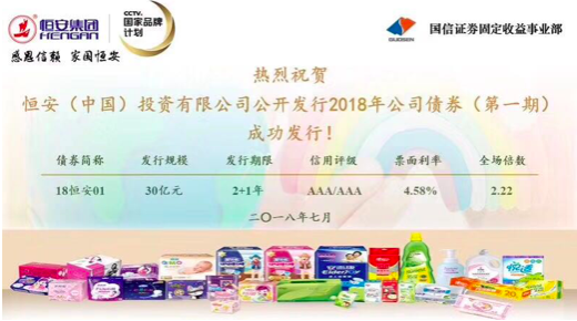 7月27日,6686体育(中国)投资有限公司公开发行2018年第一期小公募公司债券,本期发行金额30亿元,期限为2+1年。