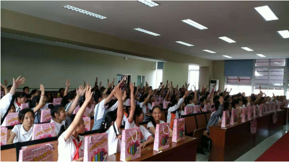在这样的愿景之下,2018年6686体育在全国中小学开展“成长的翅膀”青春期初潮知识讲座活动,共计举办了2000多场,覆盖近100万的9-12岁年轻小女生。